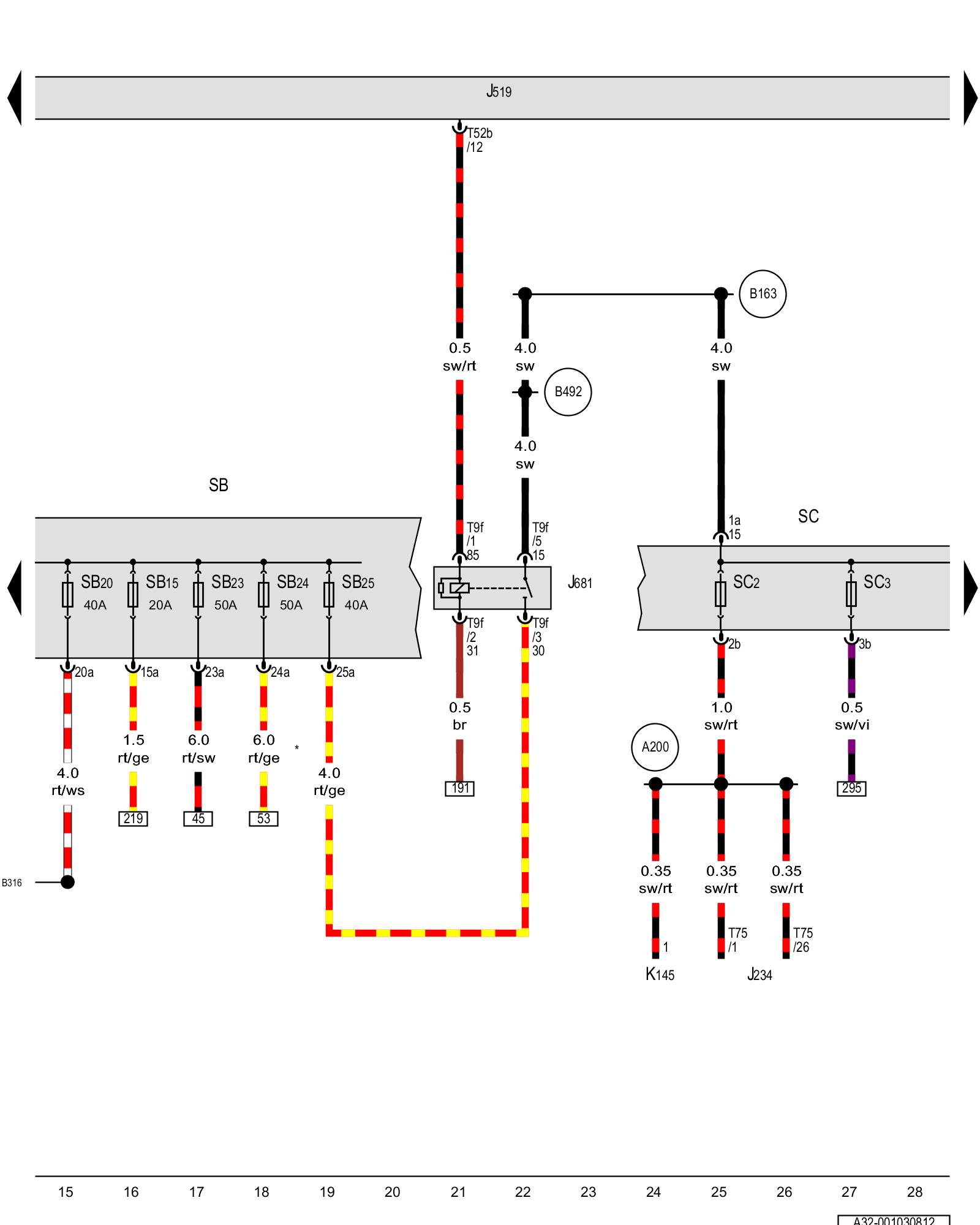 (B492) - Positive connection 3 (15) (in interior wiring harness)
