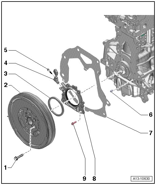 • Removing and installing, refer to => [ Sealing Flange, Transmission Side ] Service and Repair.