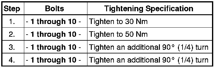 Cylinder Head Bolt Tightening Sequence and Specification