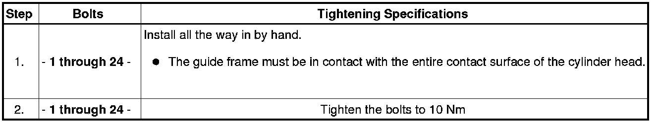 • Tightening sequence and specification, refer to => [ Guide Frame Bolt Tightening Sequence and Specification ].