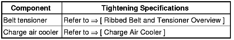 - Remove the charge air cooler. Refer to => [ Charge Air Cooler ] Charge Air Cooler.