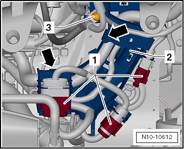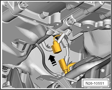 - Seal the open lines and connections with clean plugs from the engine bung set (VAS 6122).