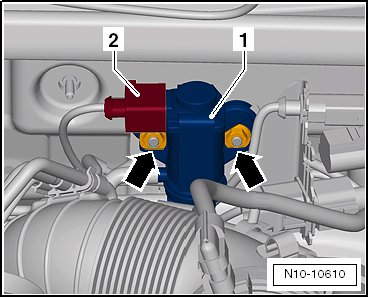 - Remove the nuts - arrows - and lay the wastegate bypass regulator valve - 1 - and the vacuum line on the engine.