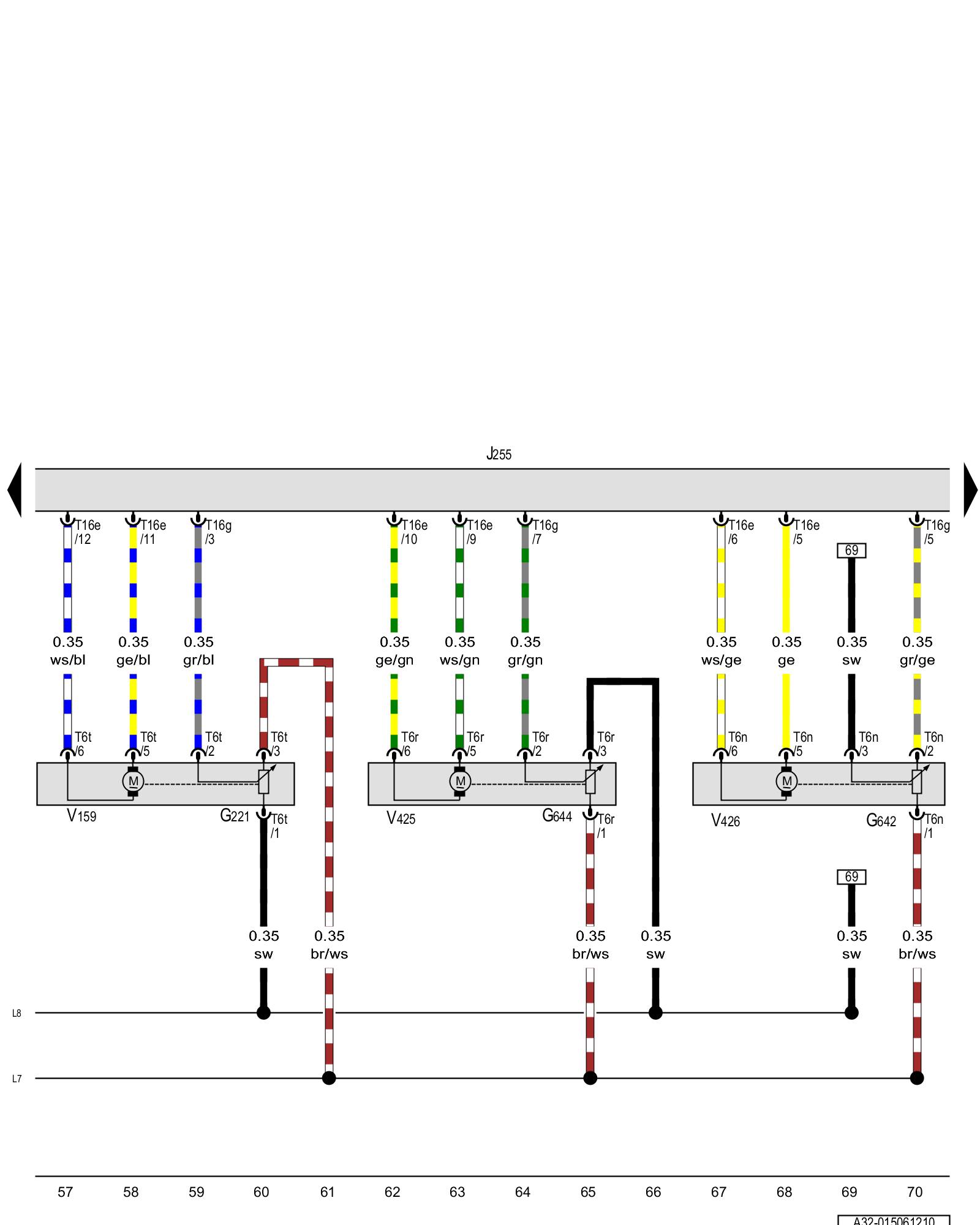 Right temperature door potentiometer/actuator, Front air distribution door motor position sensor, Fresh air/recirculating air/back pressure door motor position sensor, Climatronic control module, Right temperature door motor, Fresh air/recirculating air/back pressure door motor, Front air distribution door motor