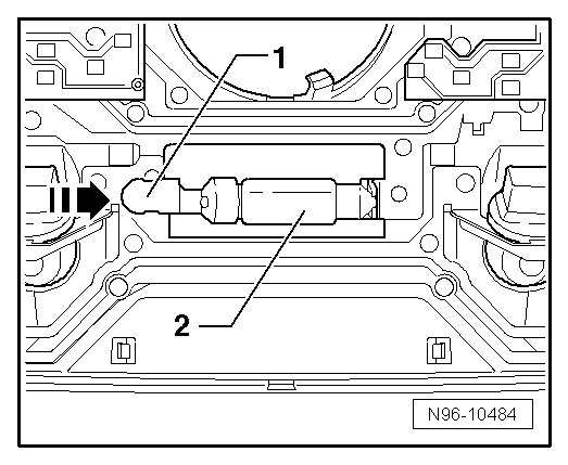 - Push the contact plate - 1 - on the front interior lamp (W1) in - direction of arrow - and remove the tubular bulb - 2 - and the contact plate from the mount.