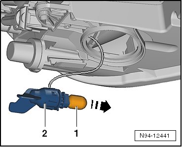 - Remove the left daytime running lamp bulb (L174) - 2 - from the bulb socket - 1 - in - direction of arrow -.