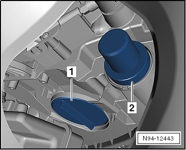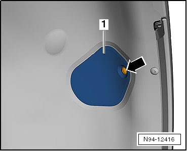 - Remove the bolt - arrow - and then remove the flap - 1 - from the wheel housing liner.