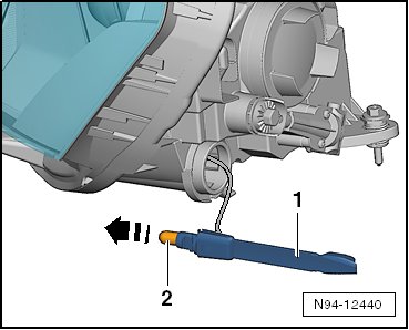 - Remove the left front side marker lamp bulb (M33) - 2 - from the bulb socket - 1 - in - direction of arrow -