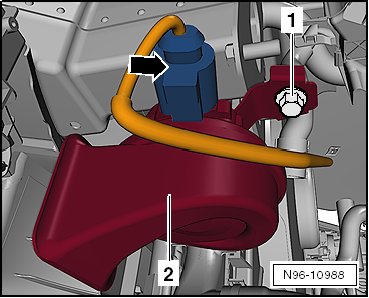- Remove the bolt - 1 - and the horn - 2 - with the bracket.