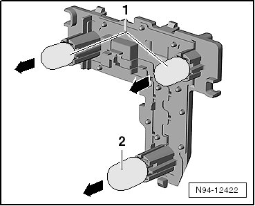 - Release the tabs in - direction of arrow - and remove the bulb holder - 2 - from the tail lamp - 1 -.
