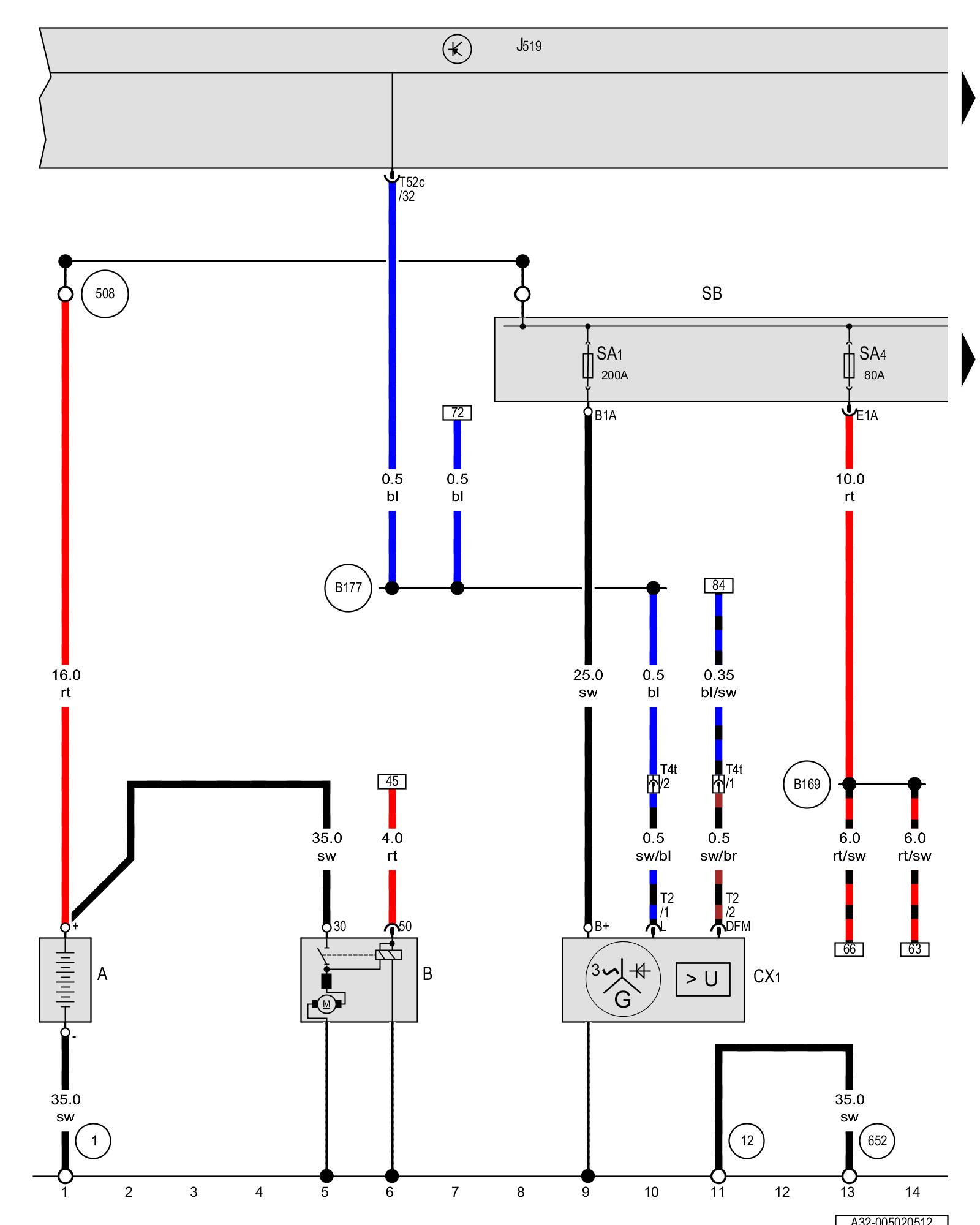 (B169) - Positive connection 1 (30) (in interior wiring harness)