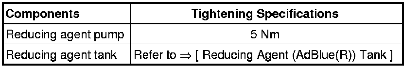 - Install the reducing agent tank. Refer to => [ Reducing Agent (AdBlue(R)) Tank ] Reducing Agent (AdBlue(R)) Tank.