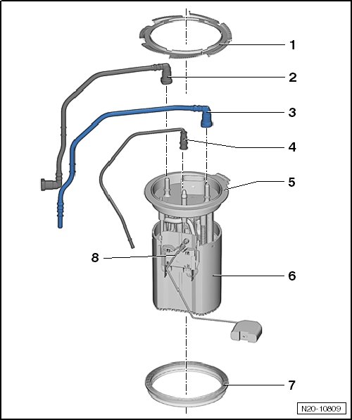 • With the transfer fuel pump (G6) and fuel level sensor.