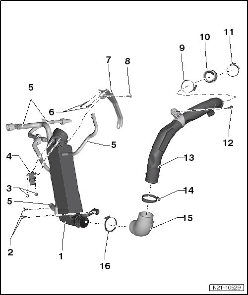 • Removing and installing, refer to => [ Charge Air Cooler ] Charge Air Cooler.