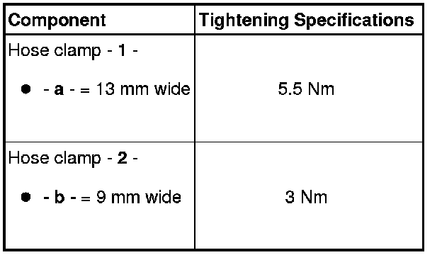 • In order to be able to securely mount the charge air hoses to their connections, spray the screws on the previously used clamps with a rust remover.