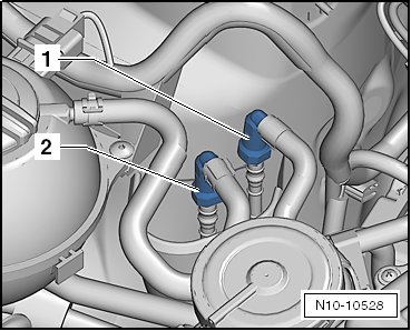 - Disconnect the connector - 2 - from the EVAP canister purge regulator valve 1 (N80) - 1 -.