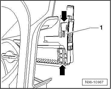 - Remove the glove compartment lamp switch - 1 - from the retainers - arrows -.