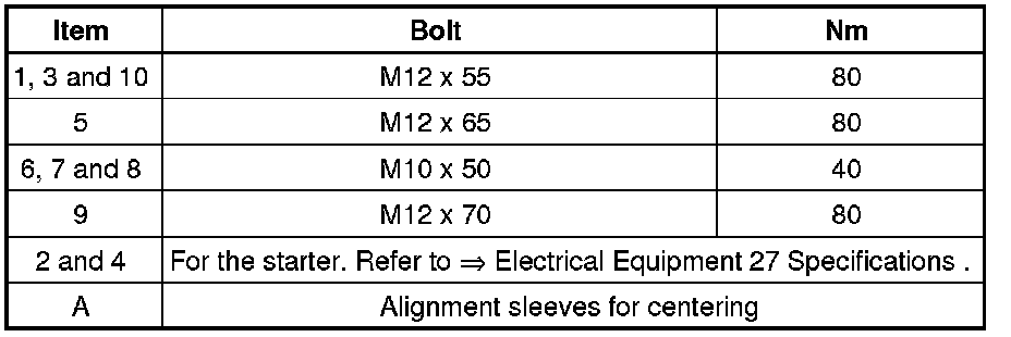 Manual Transmission 02Q to Engine, Bolt Tightening Sequence and Specification