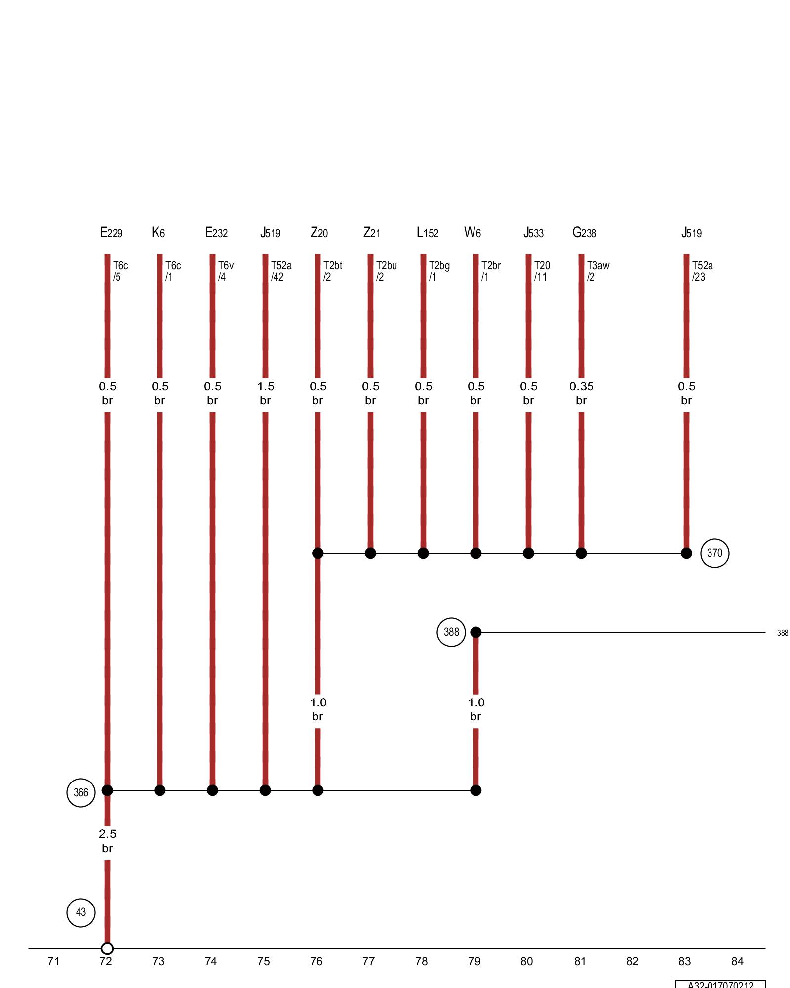 Ground connection on A-pillar, lower right, Ground connection 1 (in main wiring harness), Ground connection 23 (in main wiring harness)