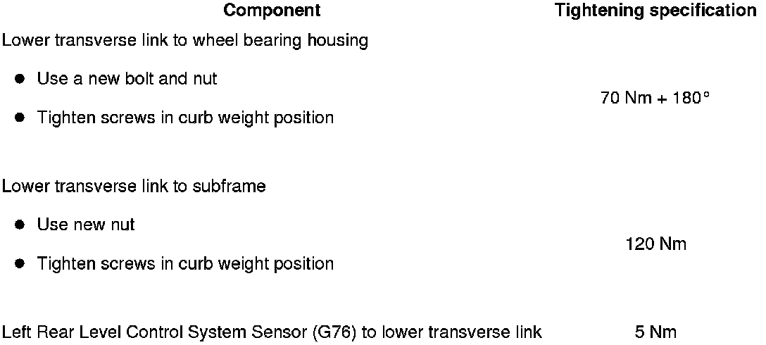 - Insert the lower transverse link in the vehicle and tighten the bolts by hand.