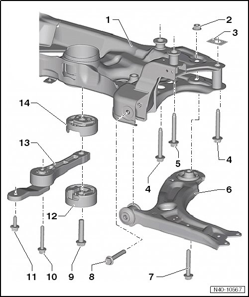 Removing and installing (left side of the vehicle with a DSG transmission or automatic transmission) refer to => [ Control Arm, Left Side of Vehicle with DSG or Automatic Transmission ] Control Arm, Left Side of Vehicle with DSG or Automatic Transmission
