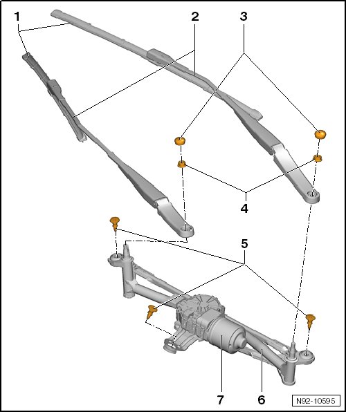 • Removing and installing, refer to => [ Joint-Free Wiper Blades ] Service and Repair.