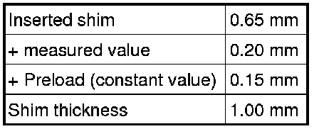 The specified bearing preload is reached by adding a constant preload figure 0.10 to 0.15 mm to the reading obtained and the thickness of the installed shim.