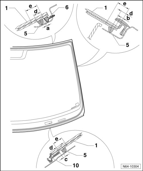 • Upper window edge: from rubber profile - 6 - 12 mm wide - dimension e -.