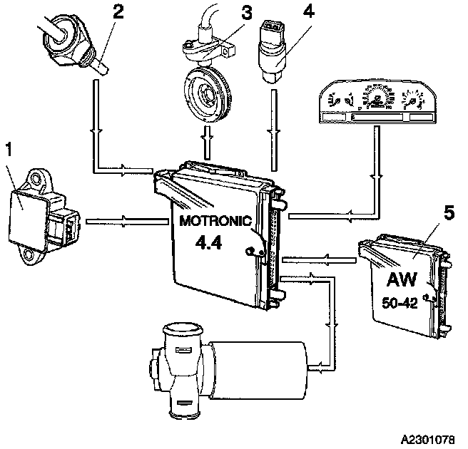 Information from the transmission control module (TCM) (5) regarding gear selector position is also used.