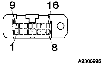 - Connect an ohmmeter between the 3-pin connector terminal 2 (data link connector side) and ground.