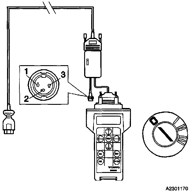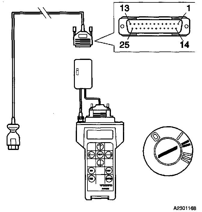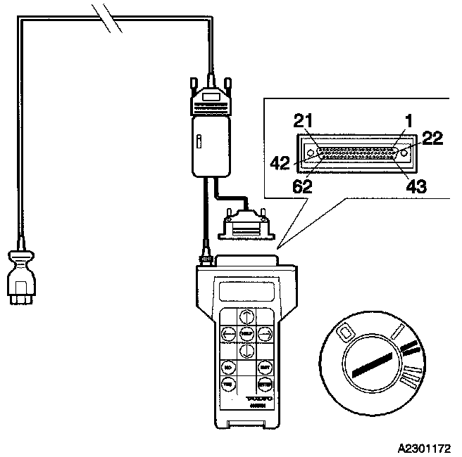 - Volvo Scan Tool (ST) connected to data link connector (DLC).