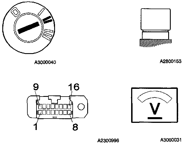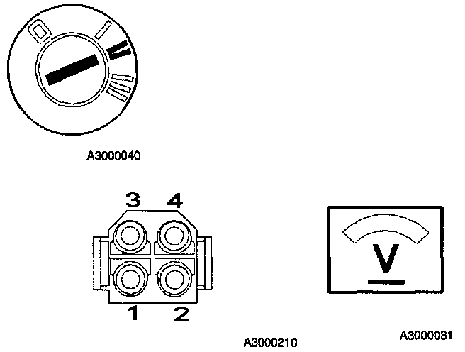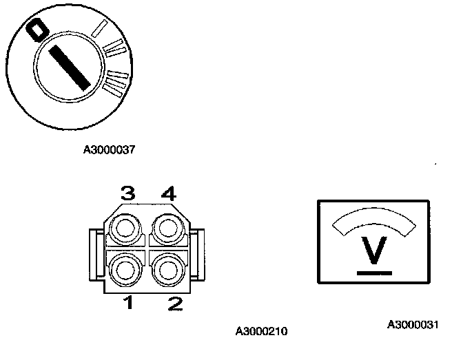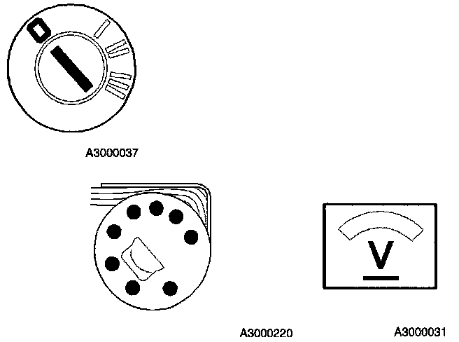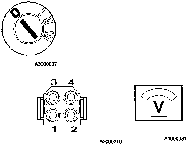 - First connect a voltmeter between ignition switch connector terminal 30 and ground and then between the other ignition switch terminal 30 and ground.