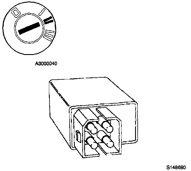 - Connect an ohmmeter between main relay connector terminal 3 and ground.