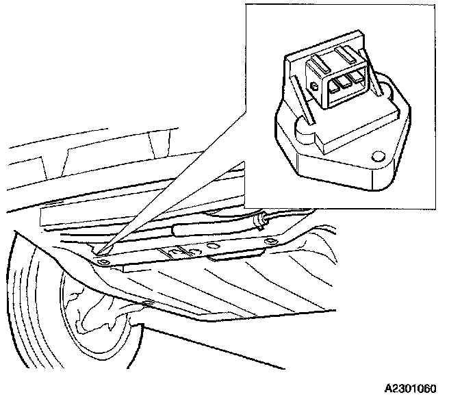 The accelerometer receives 5 V from the Engine Control Module (ECM). Its output signal is approx. 2.5 V for a stationary car. When there is vertical movement the signal will oscillate around 2.5 V.