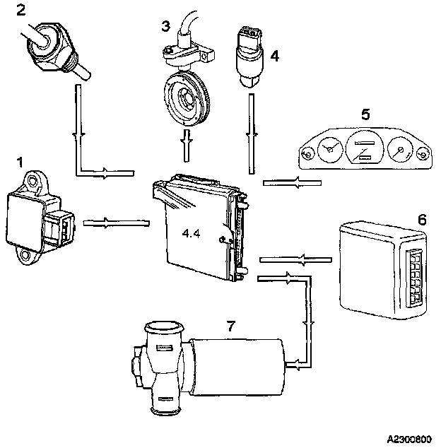 Information from the transmission control module (5) regarding gear selector position is also used.