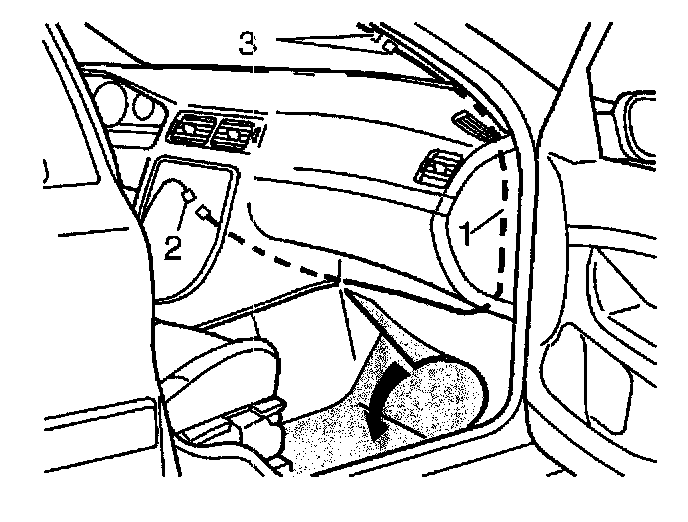 - Thread the extension cable (1) down between the A-post and the right hand side of the dashboard. Route the cable at the front edge of the floor