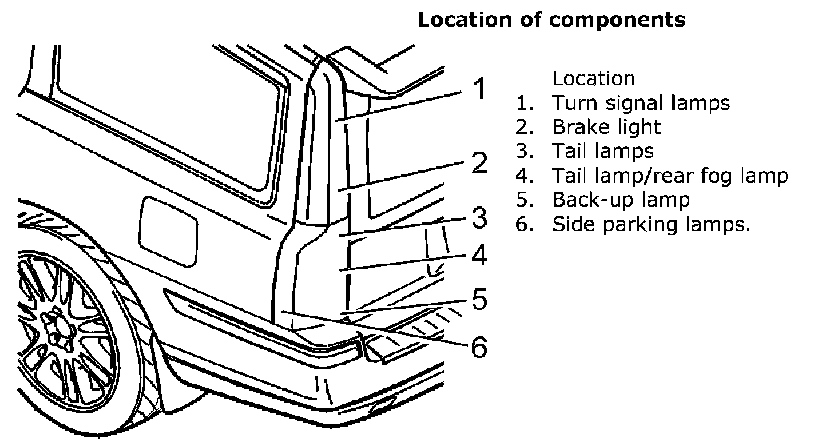 NOTE: There is only a fog tail lamp bulb in one of the tail lamps. In the left tail lamp on left-hand drive vehicles or in the right tail lamp on right-hand drive vehicles.