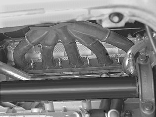 - the front exhaust pipe on the manifold. Use a new gasket and new nuts. Do not tighten!