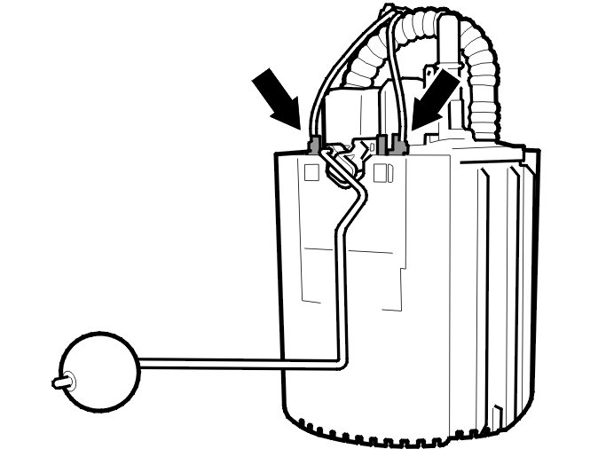Lift up the float arm to the centre position and remove the level sensor.