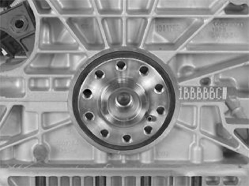 - Only applies to cars with dual mass flywheels: There is a marking in the form of a shallow hole (see the arrow). The marking indicates the direction to the guide hole on the flywheel.