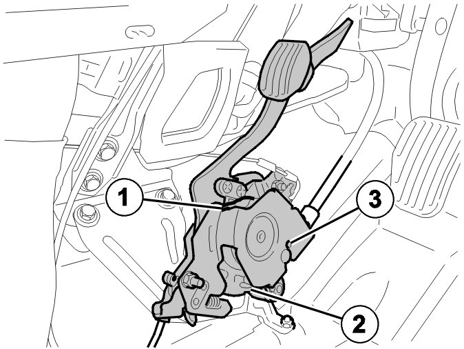 Use a pipe wrench to push back the primary cable mounting (2). Insert a 6.5 mm locking pin into the hole in the pedal (3) (it must pass through the bracket, cable pulley, pedal and the other bracket).