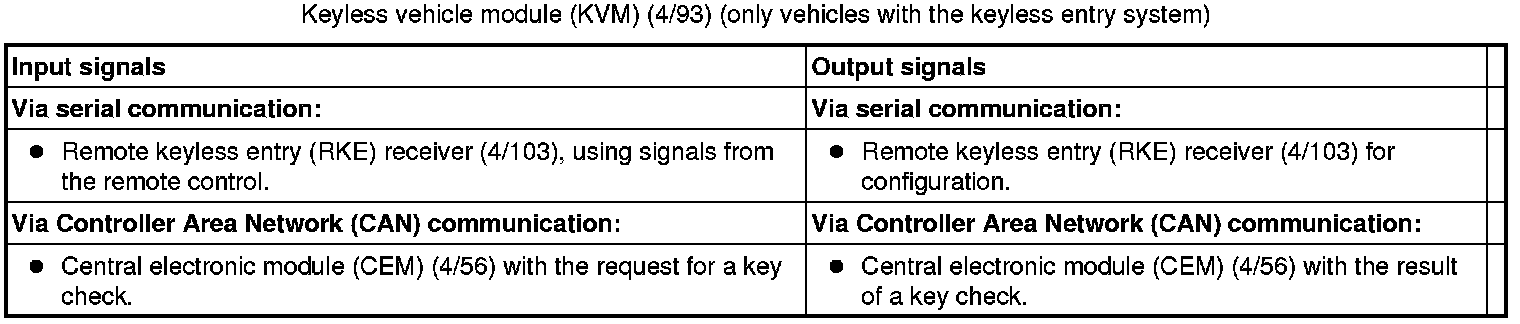The tables below summarize the input and output signals to the units in the system for the alarm. The signal types are divided into directly connected signals, serial communication and controller area network (CAN) communication.