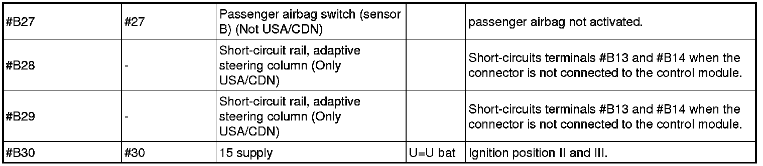 Signal Specification, Supplemental Restraint System Module (SRS)