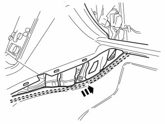 - Remove the sound barrier on the driver's side by first removing the two screws and then prizing it away at the top edge.