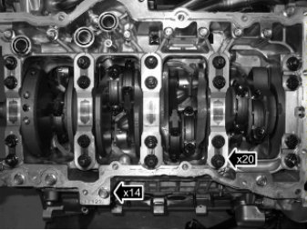 Caution! The bearing covers are not interchangeable. Also note the position of the bearing caps in relation to the rotation of the crankshaft.