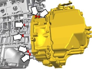 Warning! Ensure that the torque converter accompanies the transmission and that it does not slide off the stator shaft. Using a screwdriver, press through some of the screw holes.
