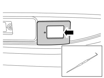 - Take a scriber or special tool part no.9995919 and insert the angled tip in the hole in the top edge of the cover.