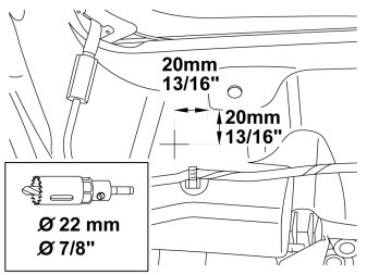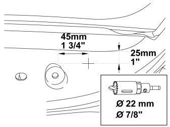 - Mark out and drill with the holesaw as illustrated.