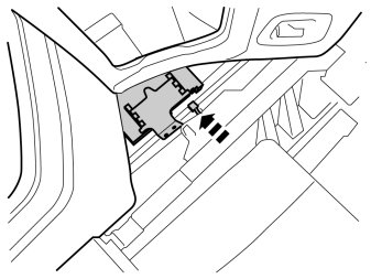 - Press in the catch on the gray connector on the rear of the fuse holder in the cargo compartment. Turn the lock arm up as far as it will go and pull out the connector.