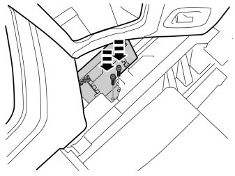 - Insert a screwdriver through the hole (1) on the seat link and press in the catch. Move the link backwards by prizing with a screwdriver between the seat runner and the link.